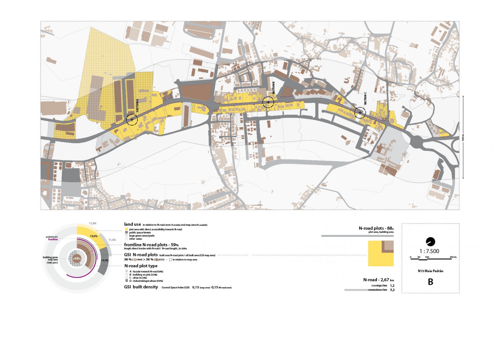 In the Porto region (case area), the mobility infrastructure network evolution developed into a complex and stratified system that gave structure to diverse urban patterns with compact and dispersed urbanisation. In this area, the Street-Road type (case type) is a hybrid urban (linear) entity – form and process – that is mainly situated at the intermediary level, in-between: towns and urban centres, national and local roads, spaces of mobility and urban spaces. Although, Street-Roads form an important part of the overall urban regional structure at various levels of territorial depth (road, street, urban and territorial section), they are as such not recognised in the actual planning system.