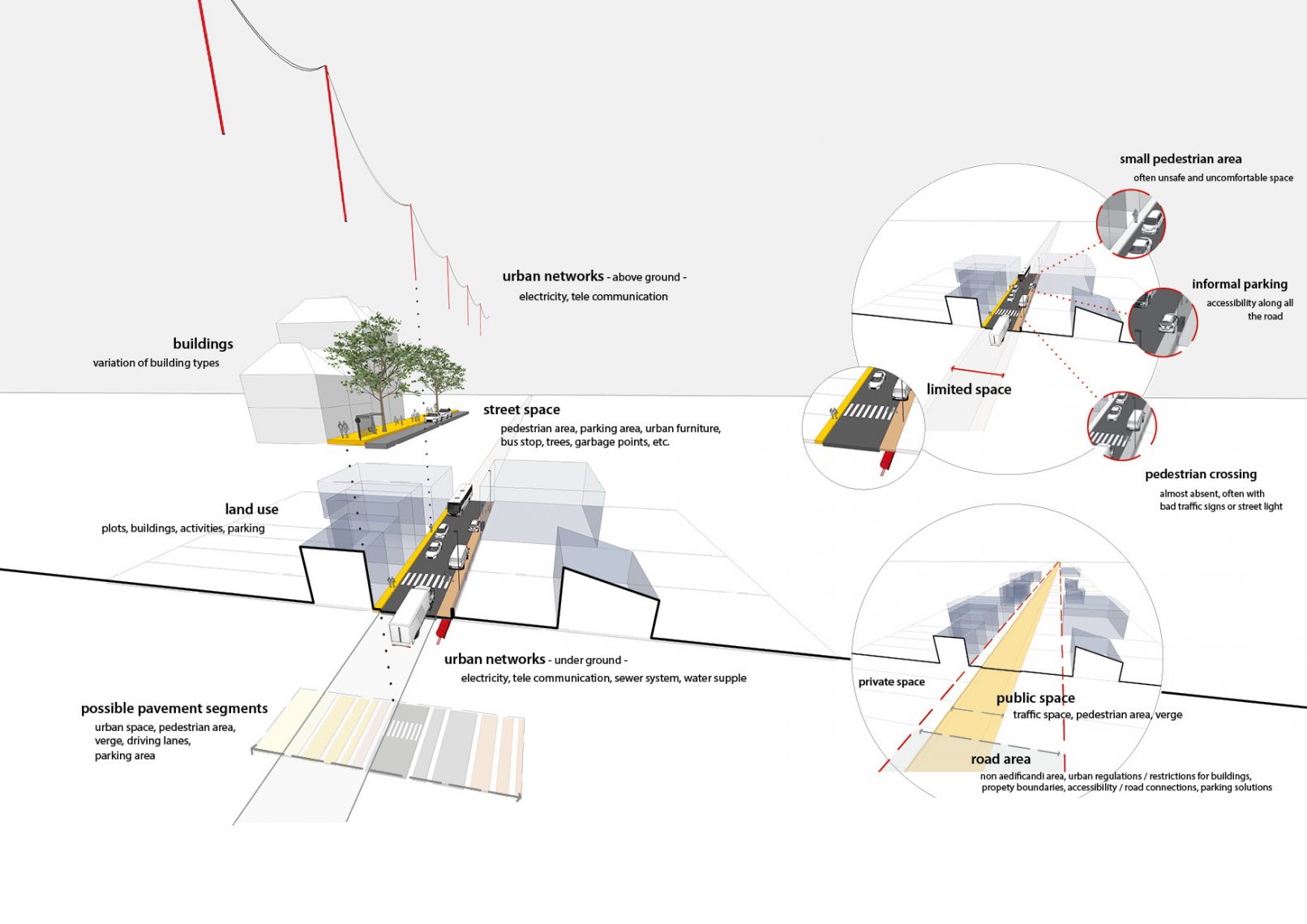 Mobility and spatial planning are nowadays detached, besides the strong reciprocal process between mobility networks and urbanisation. In general, mobility infrastructure planning is sectorial organised – technically, juridically, financially and politically. The introducing of new road types, as motorways, also provoked paradoxes of infrastructure, as the creation of barriers (physically and socially), a car-dominated-design paradigm, a car-culture that excludes people, and infrastructural side effects such as environmental problems and traffic accidents. These are often frictions between various territorial scale levels (physical, governance).